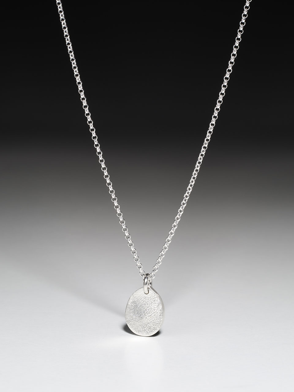 Runder Nasenabdruckanhänger an einer Silberkette, 1,7 cm im Durchmesser.