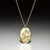 Ovaler Pfotenabdruckanhänger an einer Silberkette mit einer sehr langlebigigen Vergoldung, seidenmattes Finish. 2,5 cm x 1,8 cm, optional mit Gravur.